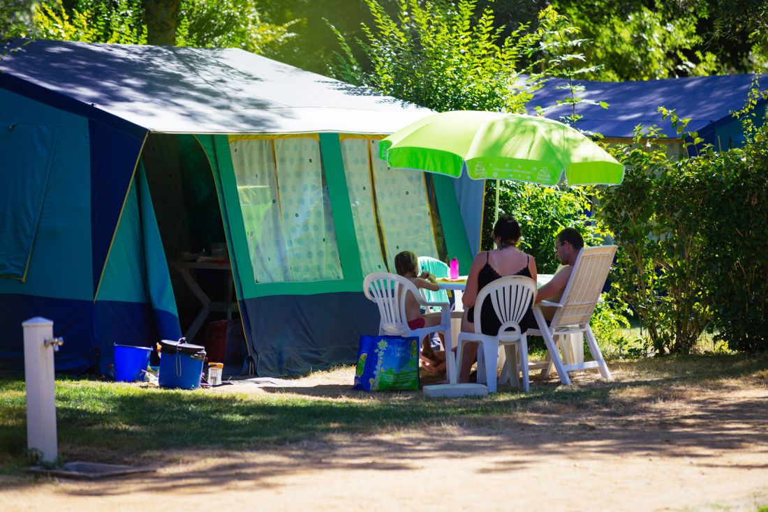 Les tentes family ne sont équipés ni de toilettes ni de douche (pas de branchement eau). Borne d'eau à proximité. Utilisation des blocs sanitaires pour leurs locataires.