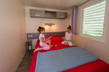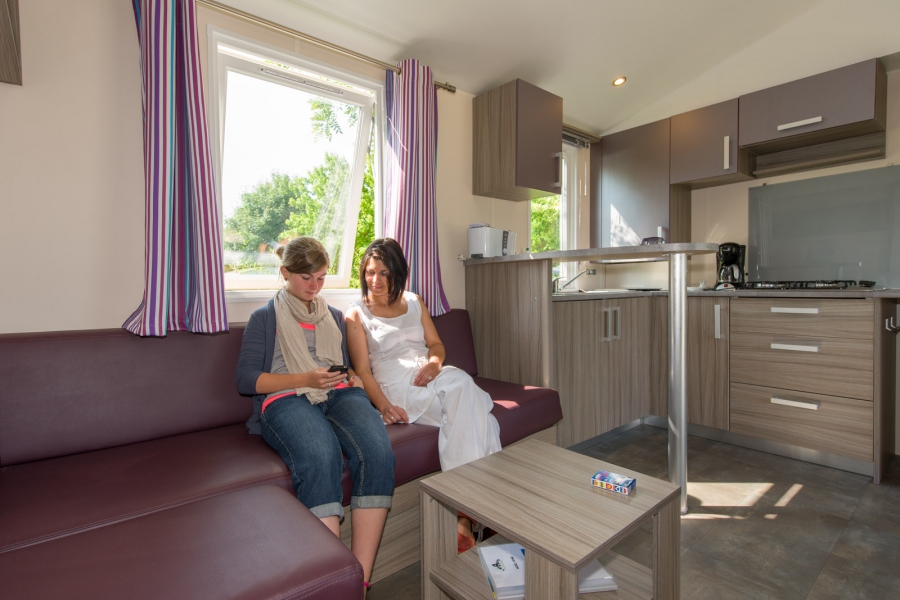 Surface de 6/8 personnes - 33 m² À partir de 450€ / semAu camping, le mobil-home s’avère être l’hébergement le plus pratique pour profiter pleinement d’un séjour reposant en toute tranquillité.